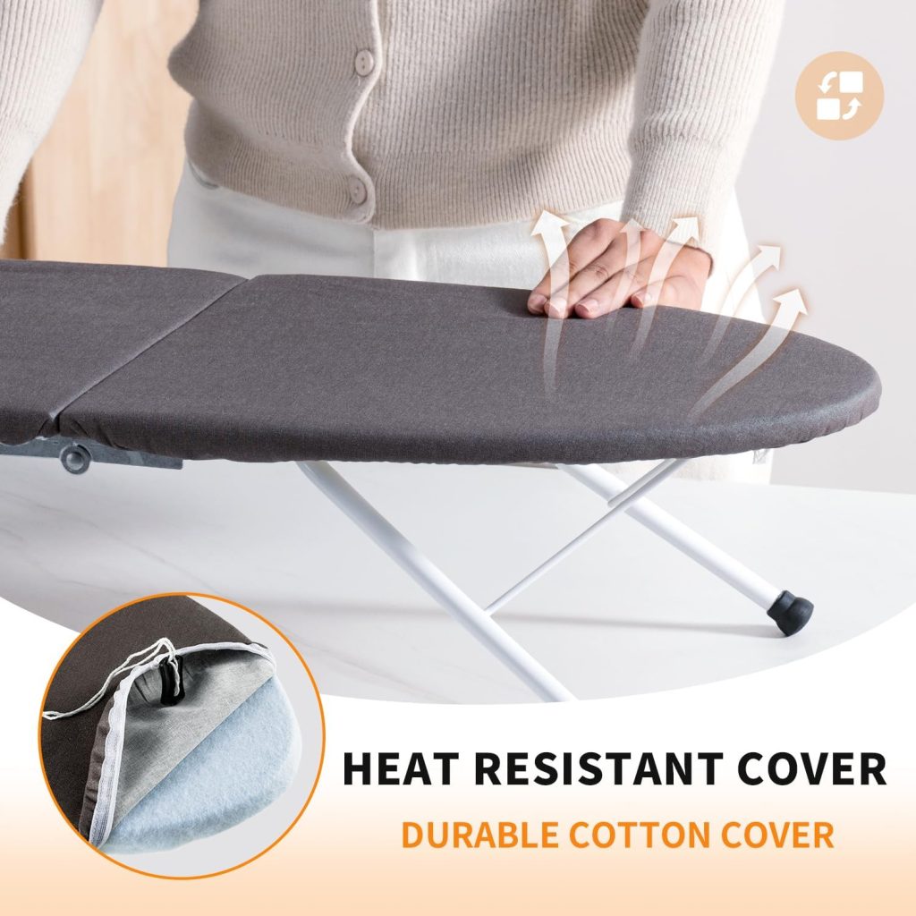 Equipped with an Iron Rest and Heat-Resistant Cover, this countertop ironing board ensures safety and efficiency during ironing sessions. The iron rest provides a convenient spot to place your iron between uses, while the heat-resistant cover protects the board and your surfaces from heat damage.