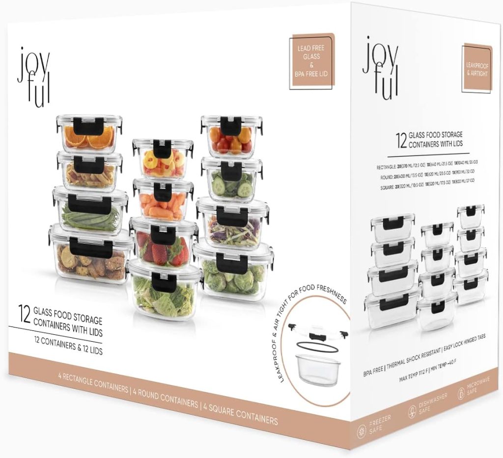 - Versatility: The JoyJolt JoyFul 24pc set offers versatile storage options with 12 airtight, freezer-safe food storage containers and 12 lids, suitable for various types of food and meal prep needs.
