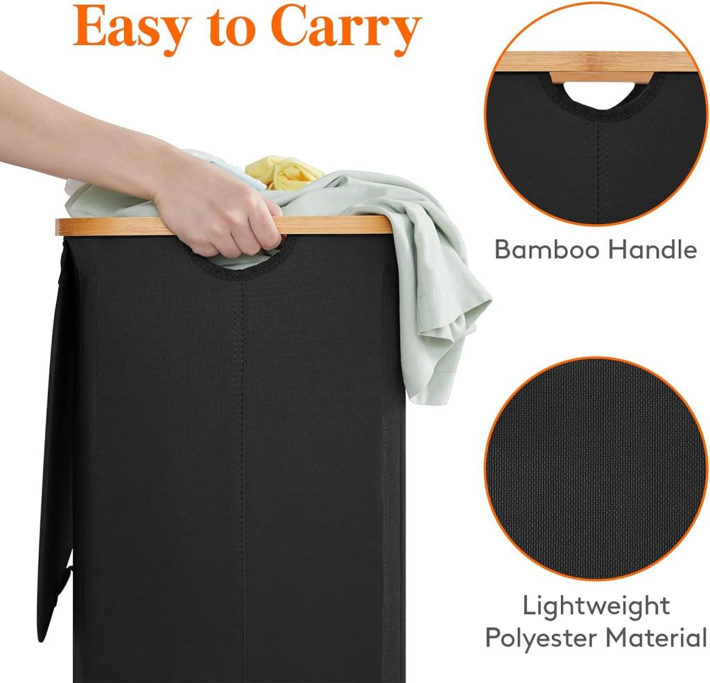 - Durable Build: Crafted with high-quality materials like bamboo handles and a sturdy frame, this laundry hamper is designed to withstand the rigors of daily use, ensuring longevity and durability.