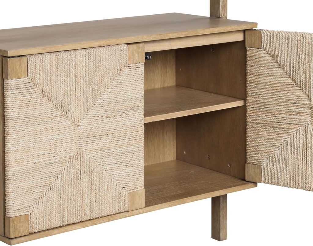 Featuring three open shelves, this bookshelf provides ample space to display books, plants, decorative accents, and more, allowing you to showcase your personal style and interests. Additionally, the storage cabinet with seagrass door fronts offers hidden storage for items you prefer to keep out of sight, helping you maintain a clutter-free environment.