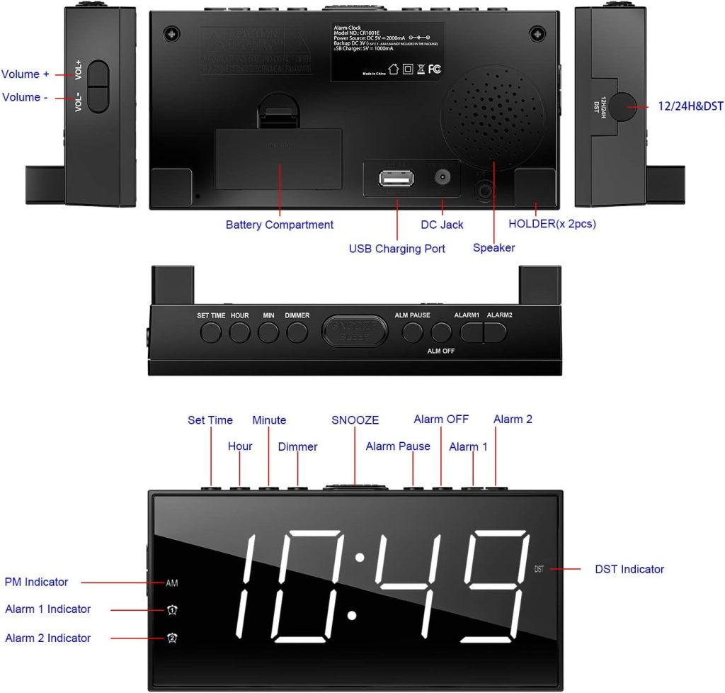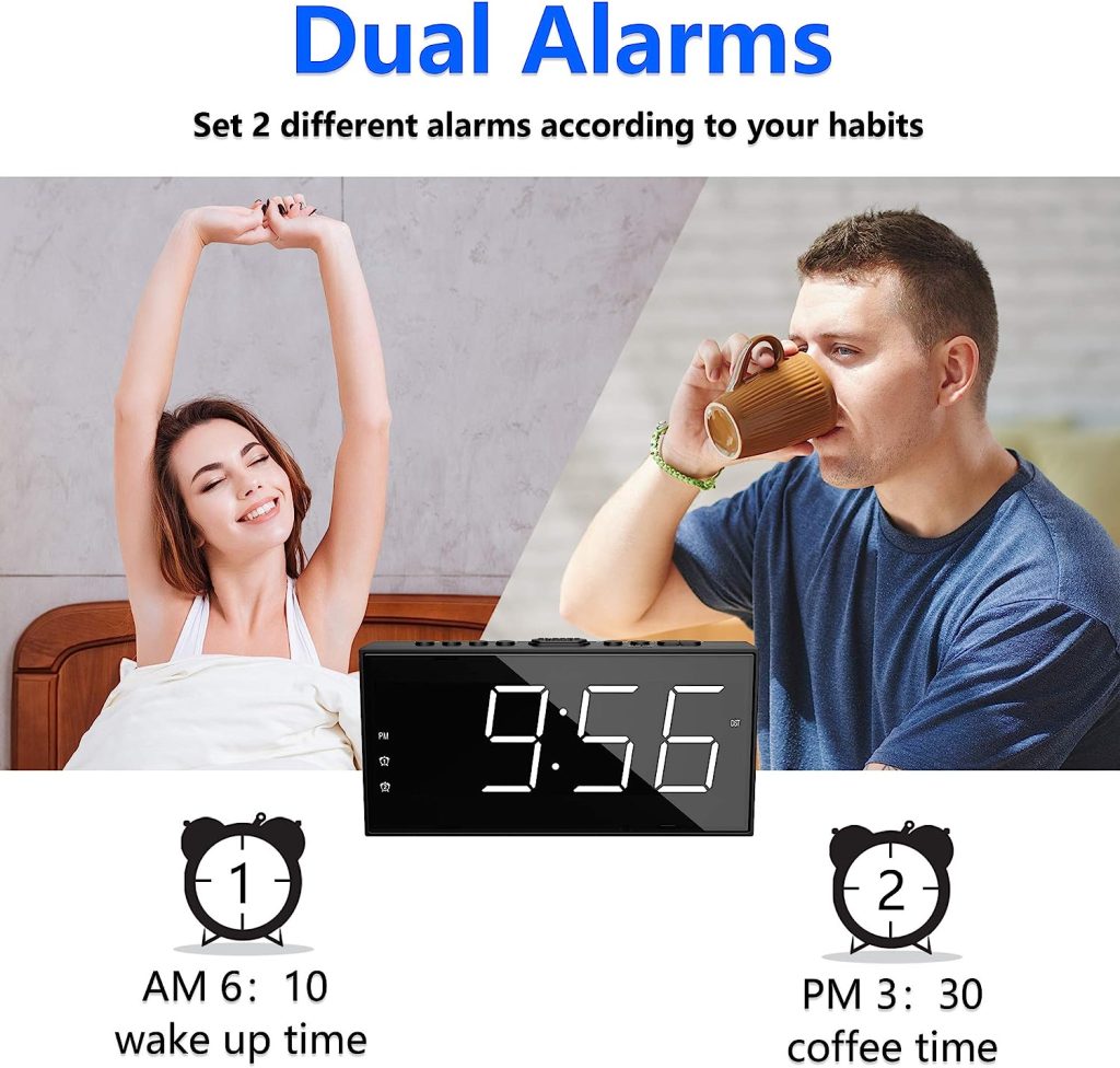 - Dual Alarms: With two alarms, you can set separate wake-up times for different days or for multiple users.
