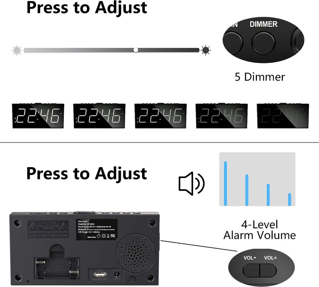 Dimmable display settings allow you to customize the brightness according to your preferences, ensuring optimal visibility without disturbing your sleep environment. Plus, the inclusion of a USB charging port means you can conveniently power up your devices while you rest, keeping them ready for use whenever you need them.