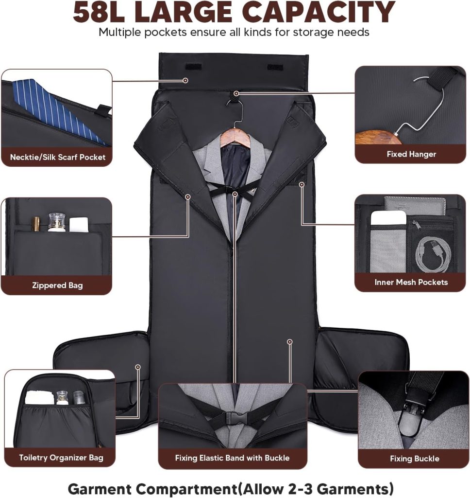 - Easy to Use: The convertible design, smooth zippers, and adjustable straps make this garment bag user-friendly and convenient to use. Packing and accessing your items is a breeze, streamlining the travel experience.