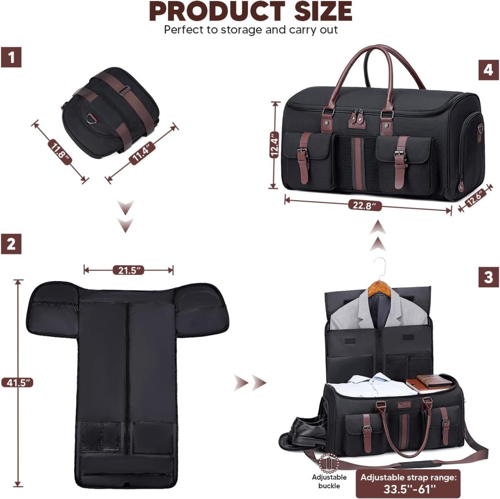 - Versatile Design: The Vessgra Garment Bag for Travel offers a 2-in-1 design, functioning as both a duffle bag and a hanging suitcase. This versatility allows for easy adaptation to different travel needs and preferences.