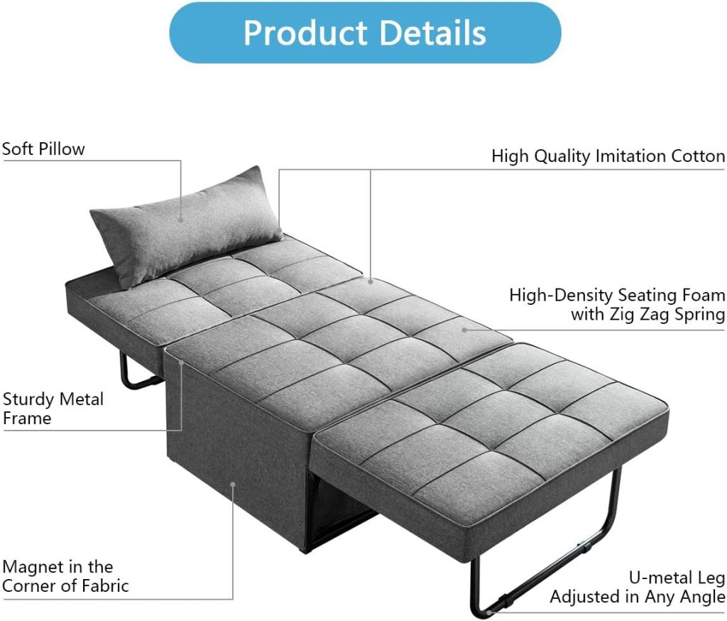 2. Space-saving Design: Ideal for compact living spaces, this convertible chair maximizes space utilization without compromising on comfort, making it perfect for small apartments or rooms where space is limited.